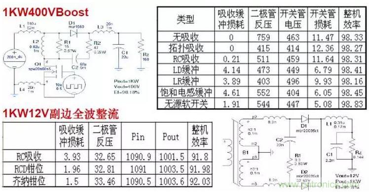 無源無損軟開關電路效率明顯高于其他緩沖吸收方式,與有源軟開關電路效率相差無幾。因此只要能夠實現(xiàn)無源軟開關的電路,可不必采用有源軟開關。