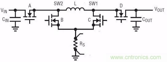 圖1:四管同步BuckBoost升降壓變換器拓樸結(jié)構(gòu)