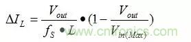 輸出滿載時,對于降壓Buck變換器,當(dāng)輸入電壓最大時,電感的紋波最大: