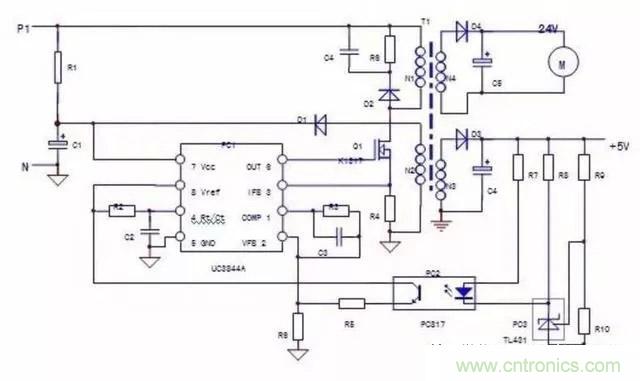 c.代換PC2,PC3無效,故障可能為開關(guān)管低效,或者UC3844內(nèi)部輸出電路低效,代換優(yōu)質(zhì)開關(guān)管或者UC3844芯片。