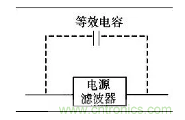 許多設(shè)備的電源線進(jìn)入機(jī)箱后,經(jīng)過很長的導(dǎo)線才接到濾波器的輸入端。例如,電源線從機(jī)箱后面板輸入,走行到前面板的電源開關(guān),又回到后面板接到濾波器?;蛘邽V波器的安裝位置距離電源線入口較遠(yuǎn),造成引線太長(如圖1所示)。