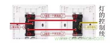單控開(kāi)關(guān)每組二個(gè)接線孔L接火線L1接燈控制線。雙控開(kāi)關(guān)每組三個(gè)接線孔L接火線或燈控制線,L1丶L2接二根雙控回路線。