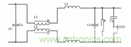 圖4:開(kāi)關(guān)電源交流側(cè)EMI濾波器電路