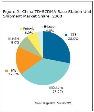圖2所示為iSuppli公司對2008年TD-SCDMA基站市場份額的估計(jì)。