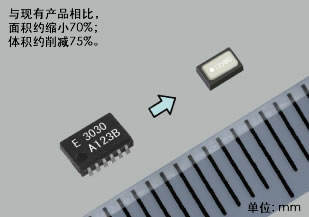 與現(xiàn)有產(chǎn)品(SG-3030LC:3.6 x 2.8 x 1.2t mm)相比,面積縮小了約70%,體積削減了約75%,為電子儀器設(shè)備的小型化及高功能化做出貢獻。