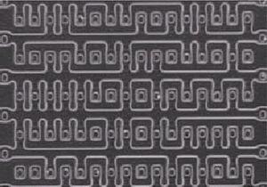 版圖重構(gòu)的技術(shù)也可用于獲得只讀型ROM的內(nèi)容。ROM的位模式存儲(chǔ)在擴(kuò)散層,用氫氟酸(HF)去除芯片各覆蓋層后,根據(jù)擴(kuò)散層的邊緣就很容易辨認(rèn)出ROM的內(nèi)容(圖3)。