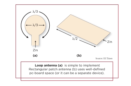 圖1:環(huán)形天線(a)易于實(shí)現(xiàn)。矩形塊天線(b)使用規(guī)劃得很好的PCB空間(它也可是一個分立器件)