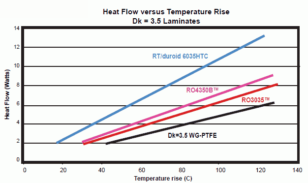 Chart 1. Four different 3.5 Dk laminate materials were tested, and the RT/duroid 6035HTC most effectively