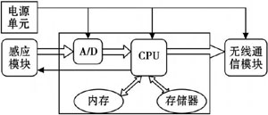 無線傳感器體系結構含有電源單元、感應模塊、無線通信模塊、微控制器。硬件設計結構如圖1所示。