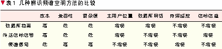 認知無線電(CR)概念由Joseph Mitola博士提出,其主導思想是實現(xiàn)伺機的動態(tài)頻譜接入,即非授權用戶(也稱次用戶或認知用戶)通過檢測,機會性地接入已分配給授權用戶(或主用戶) 但暫時很少使用甚至未被使用的空閑頻段,一旦主用戶重新接入該頻段,次用戶迅速騰出信道。這種技術需解決的首要問題就是如何快速準確地獲取授權頻譜的使用情況,目前主要有3類解決方案:建立數據庫檔案、傳送信標信號和頻譜感知。表1從多個方面對3種方案進行了比較,其中頻譜感知方案因具有建設成本低、與現(xiàn)有主系統(tǒng)的兼容性強等突出優(yōu)點,得到了大多數研究學者的認同;另外兩種由于受到政治、經濟等因素的制約而很難實現(xiàn),對其研究相對較少。