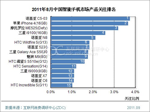 (圖)2011年8月中國(guó)智能手機(jī)市場(chǎng)產(chǎn)品關(guān)注排名