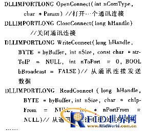 (1)底層數(shù)據(jù)通訊接口組件:負(fù)責(zé)數(shù)據(jù)通訊的鏈路層和物理層,是讀寫(xiě)器與應(yīng)用軟件通訊的物理基礎(chǔ),在應(yīng)用邏輯上,與應(yīng)用通訊協(xié)議無(wú)關(guān)。所以,底層數(shù)據(jù)通訊應(yīng)獨(dú)立設(shè)計(jì)相對(duì)固定的接口,與高層應(yīng)用分離。