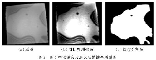 該檢測儀更具有靈活性和實用性,不但可用于同質(zhì)材料鍵合片的質(zhì)量檢測,還可用于異質(zhì)材料鍵合片的檢測,用于篩選適合下一步工藝研究的合適鍵合片等。同時,該檢測儀結(jié)合到鍵合裝置中,可以實時觀測鍵合過程中鍵合的動態(tài)圖像,觀察鍵合波,實時指導鍵合工藝。但目前已實現(xiàn)的軟件功能還很簡單,只能進行鍵合質(zhì)量的初步評估。要獲得鍵合片的更多信息,需要添加軟件功能,這是該系統(tǒng)的不足之處和值得改進的地方。