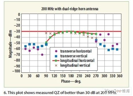 圖8:圖中測(cè)試采用一個(gè)對(duì)數(shù)周期天線來掃描QZ以測(cè)量反射率。