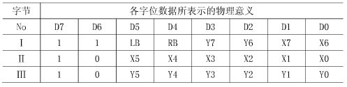 編碼的目的是將X和Y方向的位移改變量,連同鼠標按鍵的實時信息,按照標準的Microsoft鼠標協(xié)議要求的格式進行編碼,以便最后發(fā)送到主機的信息能夠被電腦正確識別,從而使電腦能正確處理發(fā)送給它的位移信號,來正確控制鼠標光標的移動等動作。表1表示的即是標準的鼠標協(xié)議規(guī)定的三字節(jié)數(shù)據(jù)包格式,第1個字節(jié)記錄的是左右按鍵的信息和鼠標X,Y位移的最高2個字位的數(shù)據(jù),按鍵按下時,對應的位置1,否則,置0;第2和第3個字節(jié)分別記錄X和Y方向位移的低6位數(shù)據(jù)。位移值的范圍取-127~+127,再大的位移改變量會自動溢出。