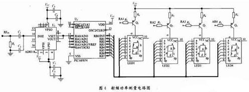 通過對(duì)射頻功率信號(hào)的測量理論分析,利用AD8318將射頻功率信號(hào)轉(zhuǎn)換為電壓信號(hào),然后經(jīng)過PIC16F874單片機(jī)進(jìn)行計(jì)數(shù)、查表,由4位LED數(shù)碼顯示出來,實(shí)現(xiàn)了大動(dòng)態(tài)范圍、高精度的射頻功率測量。
