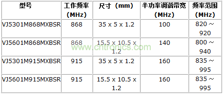 VJ5301M868MXBSR、VJ5301M915MXBSR、VJ5601M868MXBSR和VJ5601M915MXBSR采用貴金屬電極技術(shù)(NME)和濕法加工工藝,具有高可靠性、陶瓷氧化物本體結(jié)構(gòu)。符合RoHS的片式天線也符合per IEC 61249-2-21的無(wú)鹵素規(guī)定,可用標(biāo)準(zhǔn)的回流焊安裝到PCB板上。