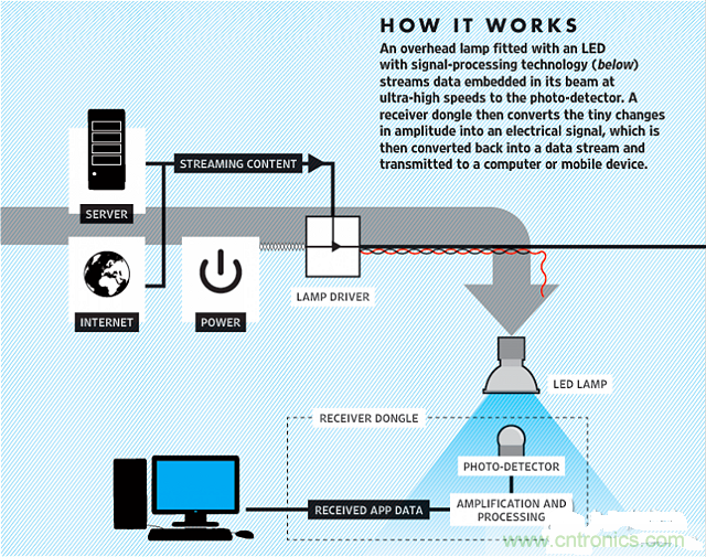 使用這種技術(shù)的LED燈泡不會(huì)出現(xiàn)視覺效果上的不同——光脈沖編碼的信息太微小,加上傳輸速度之快,肉眼是看不見的。此外,目前尚不清楚這種更快速的數(shù)據(jù)傳輸技術(shù)是否會(huì)增加LED燈和光學(xué)探測(cè)器的成本。