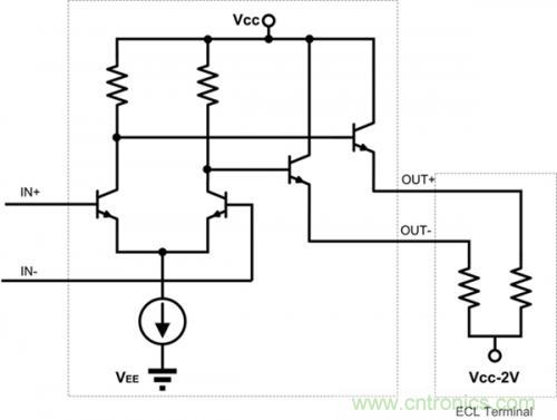 PECL即Positive Emitter-Couple Logic,也就是正發(fā)射極耦合邏輯的意思,使用5.0V電源。PECL 是由ECL 演變而來的,ECL 即Emitter-Couple Logic,也就是發(fā)射極耦合邏輯。ECL 有兩個供電電壓VCC和VEE。當VEE接地時,VCC 接正電壓時,這時的邏輯稱為PECL;當VCC 接地時,VEE接負電壓時,這時的邏輯成為NECL,VEE一般接-5.2V電源;一般狹義的ECL 就是指NECL。由于PECL/LVPECL可以和系統(tǒng)內(nèi)其他電路共用一個正電源供電,所以PECL/ LVPECL相對于ECL應用更為廣泛。起初的PECL器件是將VCC接+5V,后來為了直接利用廣泛使用的3.3V和2.5V電壓,出現(xiàn)了VCC=3.3V/2.5V的LVPECL(Low Voltage PECL)。