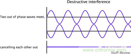 ANC技術(shù)的原理并不深?yuàn)W,高中物理就教過(guò),就是波的干涉。如果大家對(duì)高考復(fù)習(xí)還記憶猶新的話,一定還記得如果兩列波幅度相同,相位相反,則它們干涉的結(jié)果是互相抵消,看不到波了!
