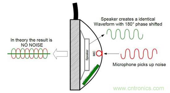 麥克風(fēng)采樣外部噪聲,改采樣到的噪聲經(jīng)過(guò)有源噪聲抵消電路處理后,產(chǎn)生一個(gè)和采樣到的噪聲相位相反,且幅度合適的“反”噪聲,并送入耳機(jī)的揚(yáng)聲器,于是噪聲在人的耳朵前就被抵消了,帶耳機(jī)的人只能聽到音樂(lè),而聽不到噪聲。