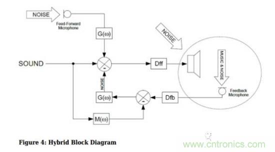 既然兩種方案各有利弊,那么把它們結(jié)合起來(lái)如何?這就是混合模式的有源噪聲消除,既使用前饋又使用反饋,系統(tǒng)設(shè)計(jì)得當(dāng)?shù)脑捒梢該P(yáng)長(zhǎng)避短,即避免風(fēng)噪又能抵消高頻噪聲。