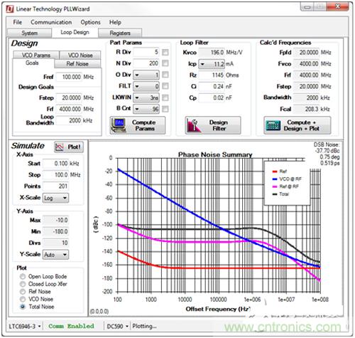 我們選擇由 LTC6946-3 產(chǎn)生 4GHz 輸出信號(hào),并使用PLLWizard™軟件