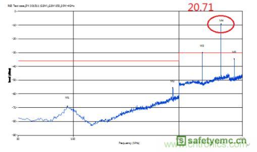 圖1 調(diào)試前輻射雜散測試結(jié)果