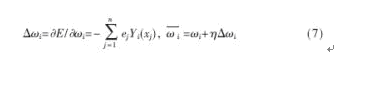 式中,Yi(xj)為隱含層第i個(gè)基函數(shù)的輸出; 為連接權(quán)值ωi的更新值;η為學(xué)習(xí)步長(zhǎng),一般為在0.2~0.9之間選取[7]。