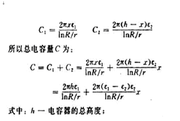 當容器的尺寸和被測介質(zhì)確定后,則h,R,r,ε1和ε2均為常數(shù),令: