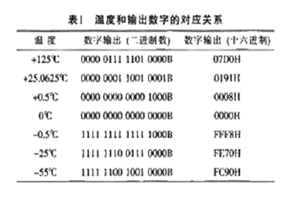 DS18B20溫度傳感器主要用于對溫度進行測量,數(shù)據(jù)可用16位符號擴展的二進制補碼讀數(shù)形式提供,并以0.0625℃/LSB形式表示。具體的溫度和數(shù)字量的關系如表1所列。