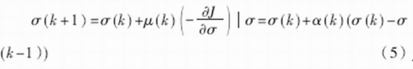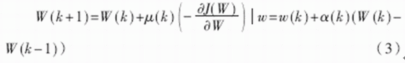 其中,μ(k)為學(xué)習(xí)率,α(k)為動(dòng)量因子,也稱為遺忘因子,又稱動(dòng)量項(xiàng)或阻尼項(xiàng)。將其稱為遺忘因子可從對(duì)于新舊信息的學(xué)習(xí)與遺忘的角度來(lái)理解;稱為動(dòng)量項(xiàng)或阻尼項(xiàng)是因?yàn)樵诰W(wǎng)絡(luò)的學(xué)習(xí)訓(xùn)練中,此項(xiàng)相當(dāng)于阻尼力,當(dāng)訓(xùn)練誤差迅速增大時(shí),它使網(wǎng)絡(luò)發(fā)散得越來(lái)越慢??傊?,它使網(wǎng)絡(luò)的變化趨于穩(wěn)定,有利于網(wǎng)絡(luò)的收斂。