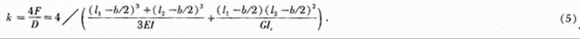 為l1桿的轉(zhuǎn)角;It為相當(dāng)極慣性矩,當(dāng)h≥b時,It=βhb3,β由h/b的數(shù)值決定,當(dāng)h
