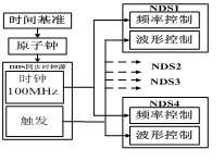 圖4給出了基于DDS同步時鐘源的配置,各個收發(fā)單元上的DDS同步時鐘源的參考頻率源應(yīng)采用高穩(wěn)定度的原子鐘(如銣、銫原子鐘)。各收發(fā)單元的原子鐘要定期的用同一時間基準來校準。用作校準的時間基準的精度要更高一些,它們可以是GPS(導(dǎo)航星全球定位系統(tǒng)),羅蘭C或彩色電視發(fā)射臺發(fā)射的時間基準信號.