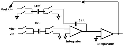 要形象描述CDC,我們必須對Σ-Δ轉(zhuǎn)換器原理作一番介紹。圖1是Σ-Δ轉(zhuǎn)換器的簡圖。