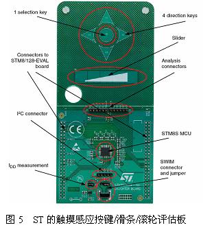 ST公司設(shè)計(jì)了完整的基于RC充電檢測(cè)的電容式感應(yīng)觸摸方案的完整設(shè)計(jì),包括PCB和完整的源程序,以及基于STM8S的標(biāo)準(zhǔn)觸摸感應(yīng)庫(kù)(TouchSenseLibrary:TSL)和應(yīng)用API接口,采用易于移植的C設(shè)計(jì),用戶可以方便地應(yīng)用于其他任何MCU系統(tǒng)中。因?yàn)镽C充電理論涉及的專利已經(jīng)對(duì)公眾開(kāi)放,所以完全沒(méi)有專利的限制。