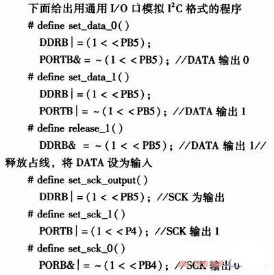 基于以上宏定義,可以方便地使SCK和SDA總線輸出持續(xù)一定時(shí)間的高電平或低電平,從而實(shí)現(xiàn)傳感器的讀寫(xiě)。