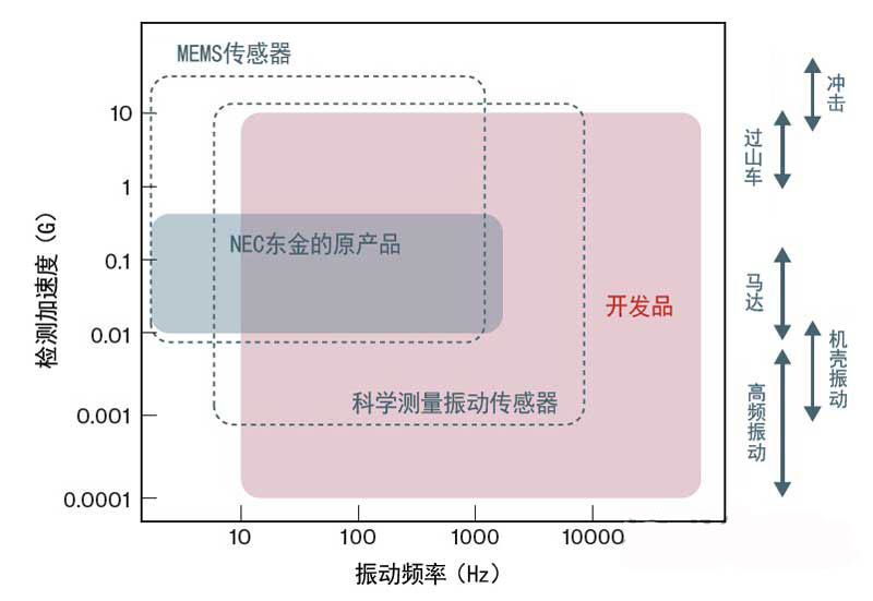 圖1:NEC東金開(kāi)發(fā)的振動(dòng)傳感器的檢測(cè)范圍