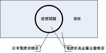 e.如果必須電鍍或高金屬含量漆,請?jiān)诎存I區(qū)域的邊緣保留一圈不要電鍍或噴漆,用以隔絕其他感應(yīng)開關(guān)。