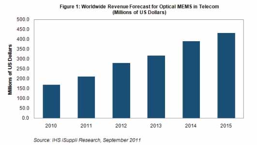 據(jù)IHS公司的最新MEMS市場研究報告,由于市場對寬帶互聯(lián)網(wǎng)服務的需求持續(xù)激增,預計2011年以及隨后幾年光MEMS銷售額強勁增長。光MEMS是超高速光纖網(wǎng)絡中的關鍵部件。