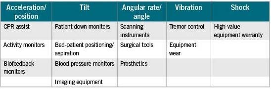 通過一個(gè)功耗極低的緊湊器件來精確檢測和測量運(yùn)動的能力,幾乎對任何涉及到運(yùn)動的應(yīng)用都是有價(jià)值的,甚至對那些運(yùn)動要求不是很關(guān)鍵的應(yīng)用也是有價(jià)值的。表1按運(yùn)動類型列出了一些基本醫(yī)療應(yīng)用。需要解決更多挑戰(zhàn)的更高級應(yīng)用將在稍后討論。
