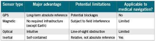 表2 廣泛應(yīng)用的導(dǎo)航傳感器及其對醫(yī)療導(dǎo)航的適用性