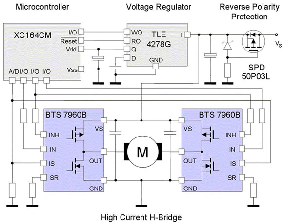 • 采用BTS7960這樣的智能半導(dǎo)體器件