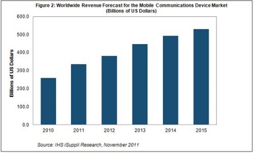 據(jù)IHS iSuppli公司的無(wú)線通信市場(chǎng)研究報(bào)告,智能手機(jī)和平板電腦在消費(fèi)者中日益普及,今年將推動(dòng)移動(dòng)通信產(chǎn)品與無(wú)線基礎(chǔ)設(shè)施設(shè)備營(yíng)業(yè)收入大增29%。