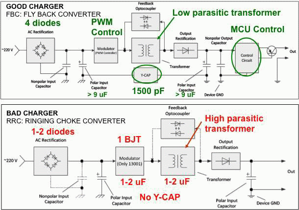 設(shè)計用于配合特定電話工作的OEM廠商的充電器具有較嚴(yán)格的噪聲規(guī)格,同時,在充電電路中廣泛采用USB連接器為配件市場創(chuàng)造了巨大的機會。為了在其中進行競爭,配件廠商充分地降低充電器成本。采用低成本電子器件的充電器給手機充電將注入很多噪聲到觸摸屏,而導(dǎo)致其很可能無法使用。