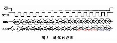 微控制器通過SPI模式3與慣性傳感器通信,在時鐘下降沿時建立數(shù)據(jù),上升沿時讀取數(shù)據(jù)。圖5為通信時序圖。