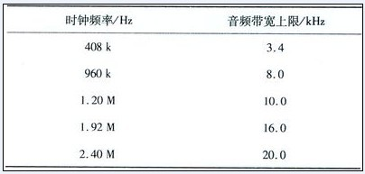 表1  取樣時(shí)鐘頻率與音頻帶寬上限對(duì)應(yīng)表