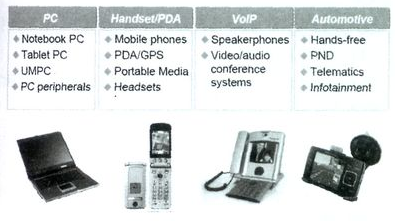 數(shù)字ECM或MEMS傳聲器和傳統(tǒng)的ECM傳聲器相比,有著不可取代的優(yōu)勢(shì)。首先,移動(dòng)設(shè)備向小型化數(shù)字化發(fā)展,急需數(shù)字拾音器件和技術(shù)與之配套;第二,數(shù)字設(shè)備包含的功能單元越來越多,如筆記本式計(jì)算機(jī),集成了藍(lán)牙和WiFi無線功能,傳聲器的安裝位置距離這些干擾源很近,設(shè)備對(duì)傳聲器抗干擾性能的要求越來越高;第三,隨著三網(wǎng)合一的發(fā)展,需要上網(wǎng)、視頻和語音傳輸可以同時(shí)進(jìn)行,這在移動(dòng)設(shè)備中通常會(huì)遇到環(huán)境背景噪聲和線路回聲的影響;第四,從提高生產(chǎn)效率的角度考慮,希望對(duì)傳聲器元件采用SMT工藝焊接組裝。數(shù)字傳聲器尤其是具有集成電路本質(zhì)的微機(jī)電( MEMS)數(shù)字傳聲器更加適合SMT焊接組裝工藝,為了解決系統(tǒng)各種射頻干擾對(duì)語音通信產(chǎn)生的噪聲,數(shù)字傳聲器尤其適用于通過算法編程達(dá)到陣列拾音技術(shù)的實(shí)現(xiàn),對(duì)于抑制環(huán)境背景噪聲和消除通話時(shí)的線路回聲方面具有突出的技術(shù)優(yōu)勢(shì),數(shù)字傳聲器輸出接口格式同數(shù)字處理系統(tǒng)具有高度的接口兼容性。數(shù)字傳聲器的應(yīng)用見圖7~8.