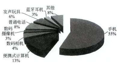 圖9 2010年全球微型駐極體傳聲器應(yīng)用領(lǐng)域市場(chǎng)分布(按需求量)