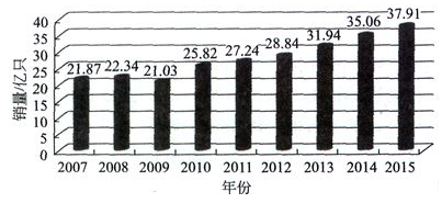 圖10  2007 - 2015年全球微型駐極體傳聲器銷量發(fā)展趨勢(shì)(2011年后為預(yù)測(cè))